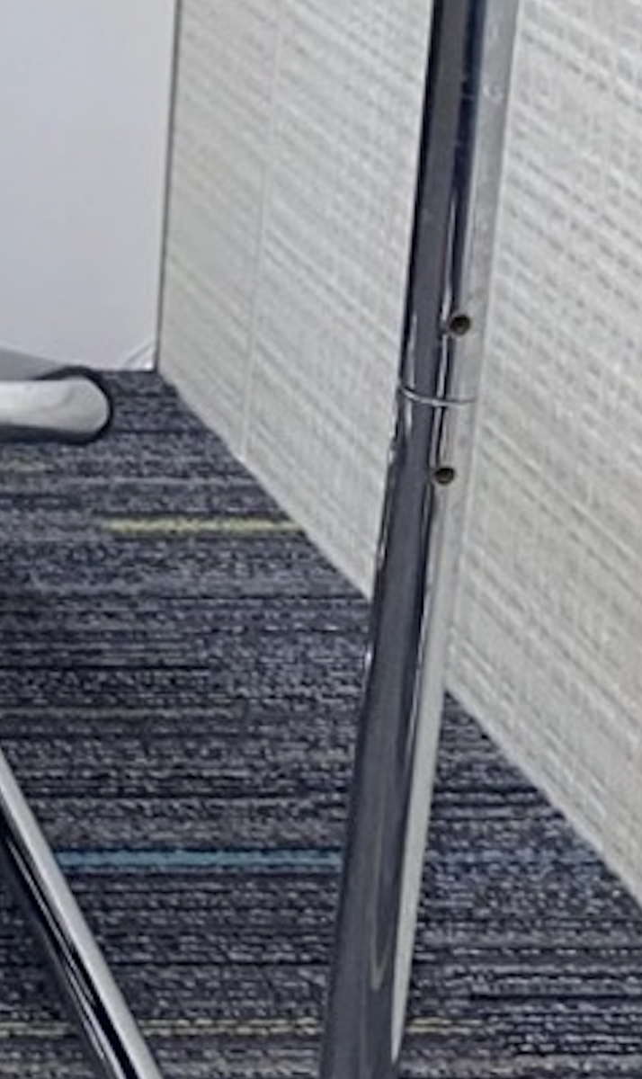 Two holes for set screws, one on either side of the seam on the bottom rails. The set screws turn in past the profile of the metal tube allowing the frame to be separated, front from back. They cannot come out. You will break them if you try hard enough to get them out.